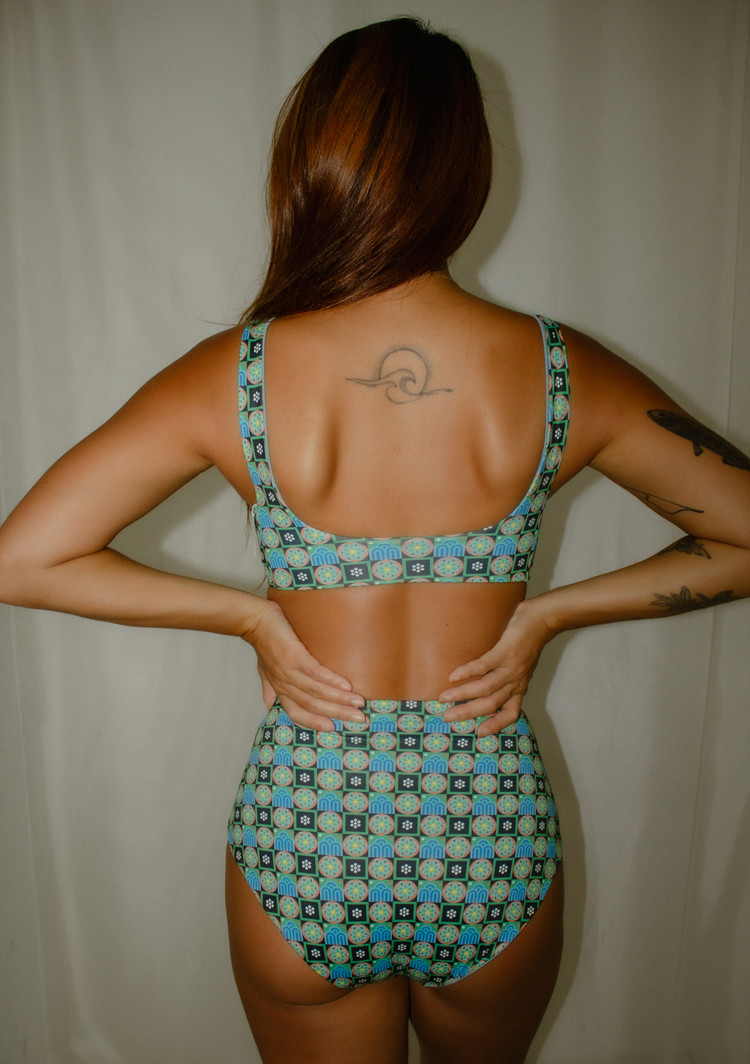 Bloomer Crop Top is an all people pleaser top designed with square neck line and thick straps. It flatters and suits all bust sizes from small to big. You can also wear it reversible- light indigo blue solid color is waiting on the other side. It's so comfortable that you might not want to take it off. Get ready catch some waves with style and comfort!